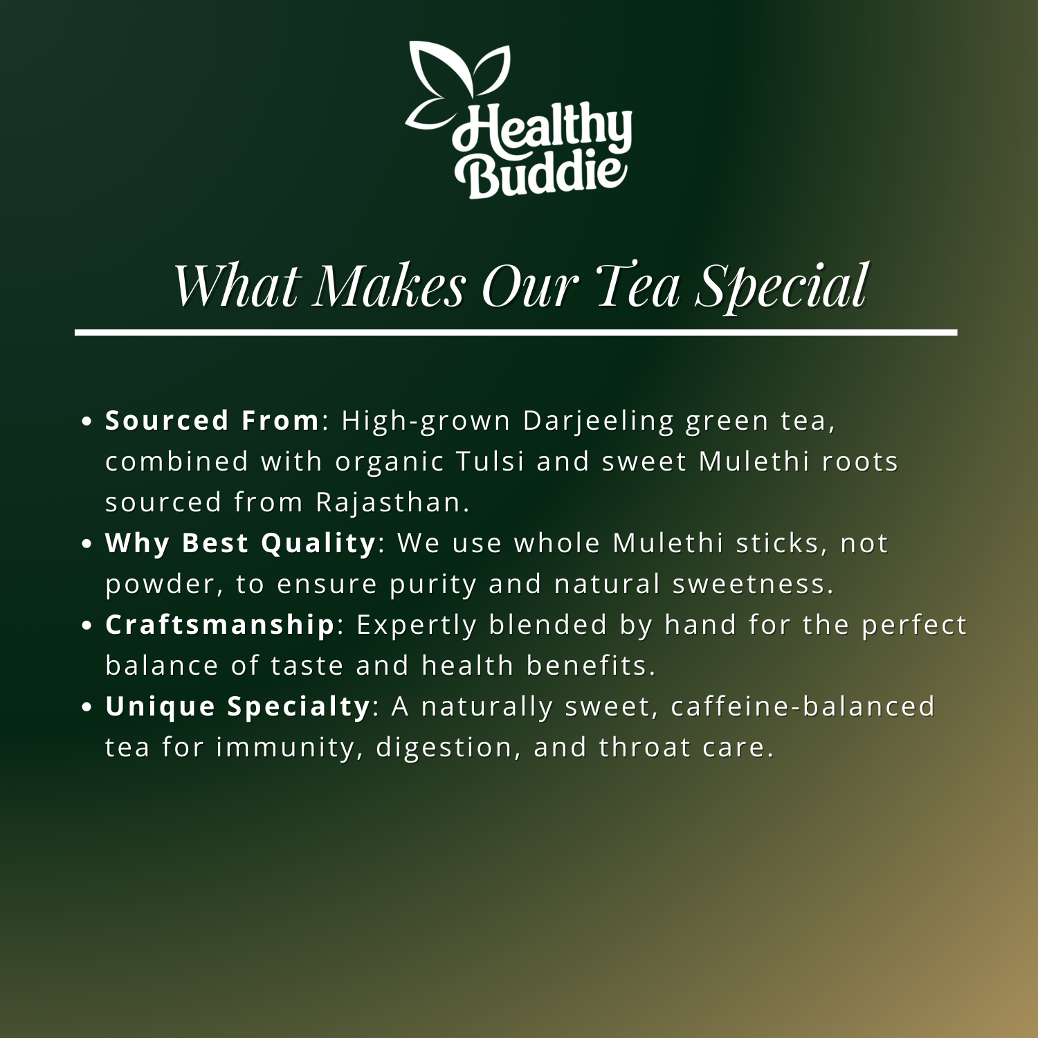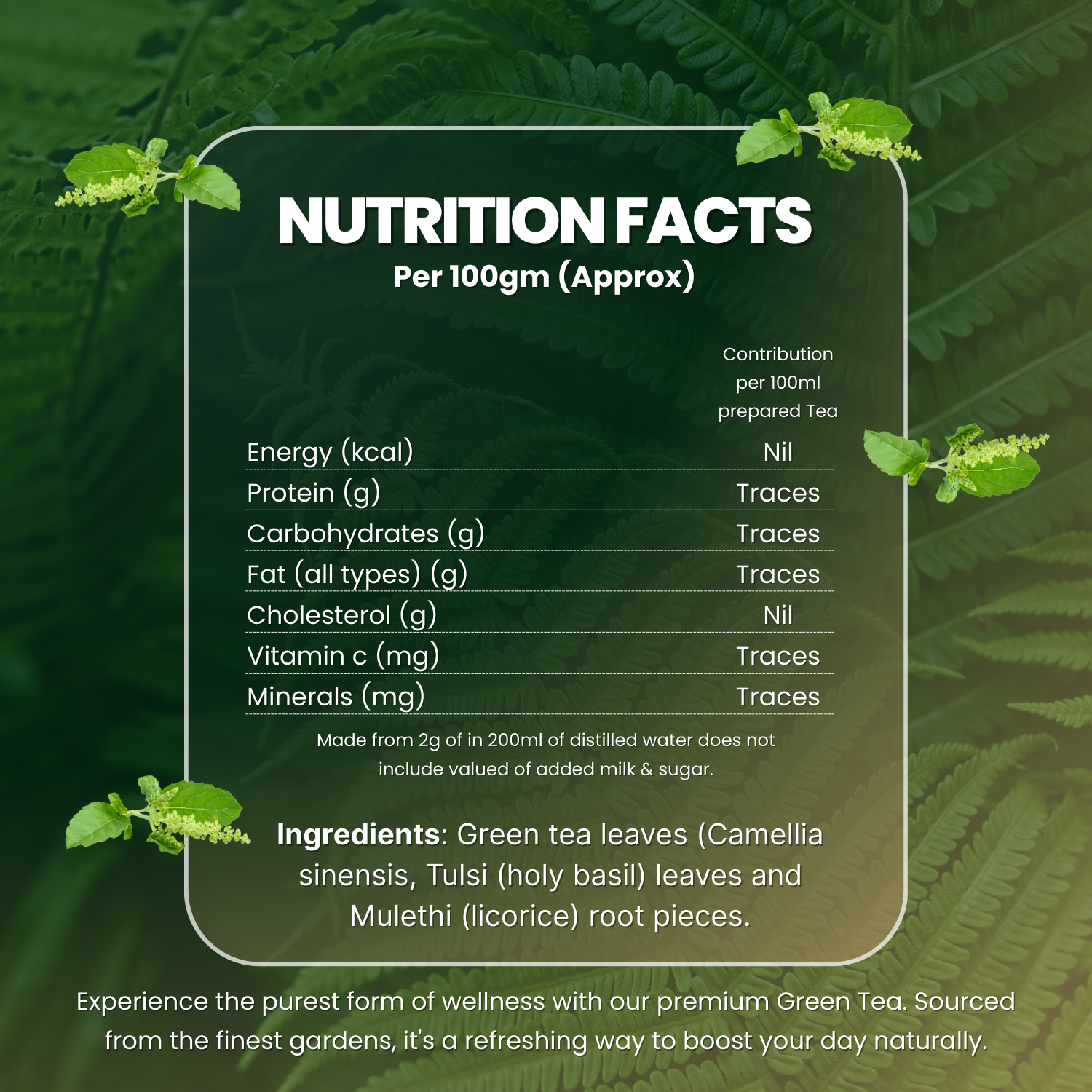 Green Tea Leaves, Tulsi (Holy Basil), Mulethi (Licorice Root)